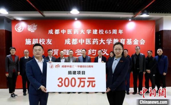 中新网成都10月27日电 (记者 贺劭清)27日,成都中医药大学建校65周年之际,该校2011级中医学专业校友施超回到母校,捐赠300万元,用于中医药文化进校园和成都中医药大学优质生源基地建设两项工作的开展。