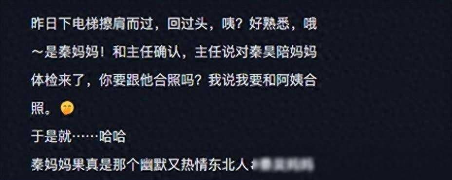 在医院里,秦妈妈不仅状态红润,笑容满面,还和医护人员亲切地合影。照片中她单手竖起大拇指,表达对医护人员的认可,亲和力十足。而医护人员也纷纷挽着她的手臂,与她亲近合影。整个场面简直宛如明星红毯一般,秦妈妈无疑是当之无愧的焦点。