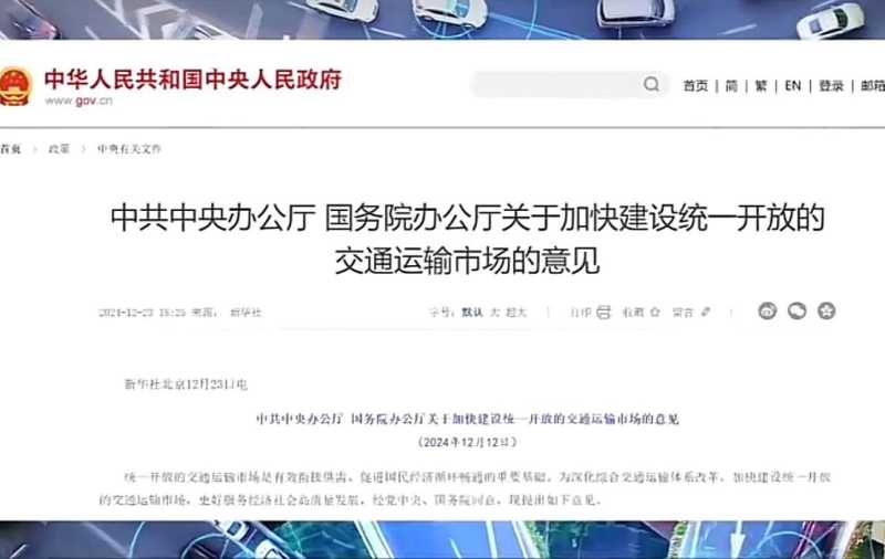 • 中办和国办发布加快建设统一开放的交通运输市场的意见,鼓励社会资本依法参与铁路建设运营,持续推进自动驾驶、智能航运等领域的先导应用试点。