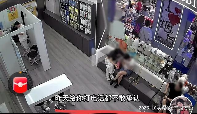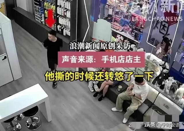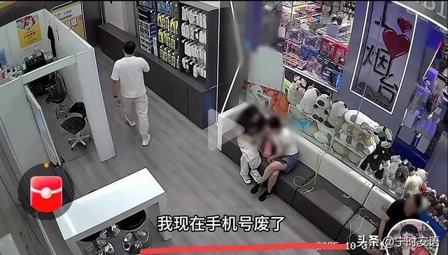 自家店里免费充电,10月4日,一行四人中,有一黑衣男子,在其手机店免费充电区充电后,故意扯断数据线后离开。女子走时,疑似往座位上涂抹东西。