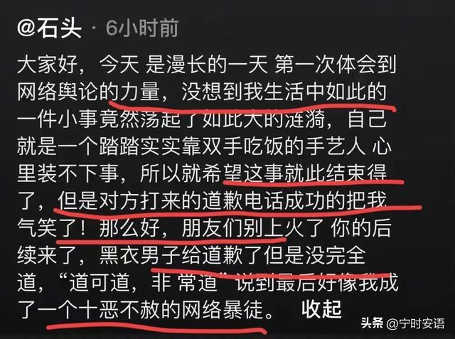 更让石先生不满的是,黑衣男子道歉的重点,根本不是“承认错误”,而是“求放过”。