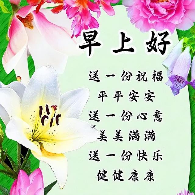 清晨鸟儿欢歌唱,别样生活展双翅。阳光明媚迎新日,欢乐幸福天天畅。起床快快活精神,健康动感加倍新。祝福早上好如花美,幸福满溢事通达!早上好我的老朋友!