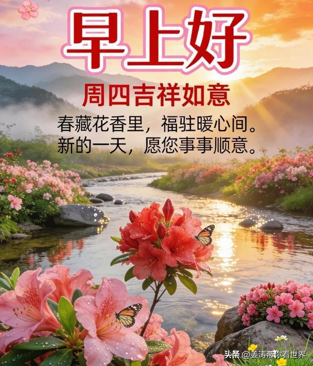 25. 人生没有完美,幸福没有满分。清晨给自己一份鼓励,让今天的自己比昨天更勇敢、更坚强、更开朗。愿好运常伴,吉祥如意。早安!