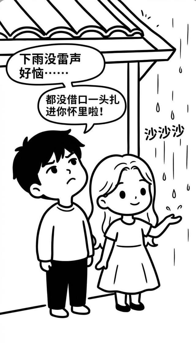 8. 下雨没雷声好恼,都没借口一头扎进你怀里啦!