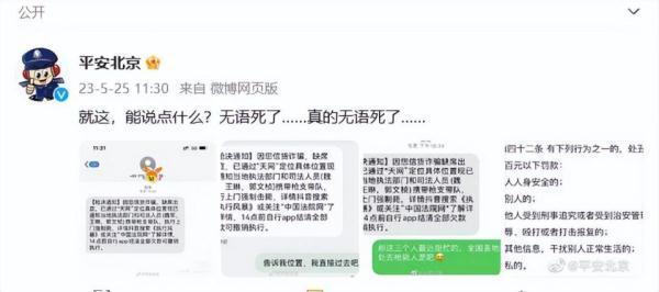 5月25日,“平安北京”官博发微博回应此事,表示:“就这,能说点什么?无语死了……真的无语死了……”