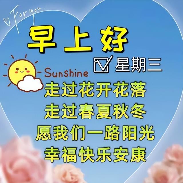 周三到了希望你能以积极的心态迎接这个美好的一天无论你的工作多么繁忙也要记得抽出时间来享受生活祝你周三快乐!