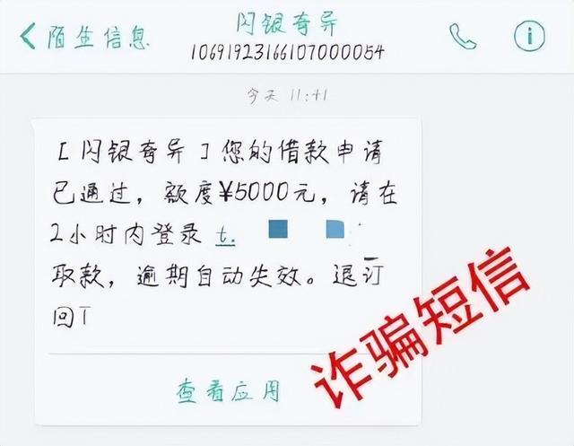 诈骗手法:骗子短信群发“秒批30万、利率3%”等贷款短信,诱导下载仿冒银行APP,输入信息后秒批额度,到提现时以“银行卡号错误冻结”索要解冻费,或要求先交保证金。