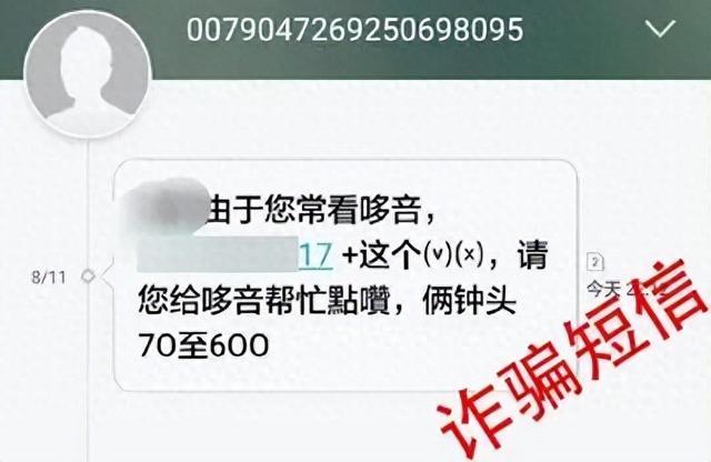 诈骗手法:骗子以“抖音点赞日结300元”广告引流,首单支付5-10元佣金。进阶任务要求垫资购买虚拟商品,以“连单未完成”“系统卡单”拒绝返款,诱导贷款刷单。