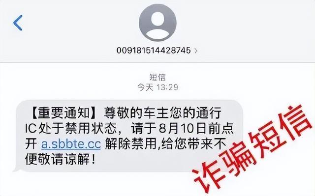 “您的ETC账户异常,需立即点击链接更新信息,否则将影响正常通行。”
