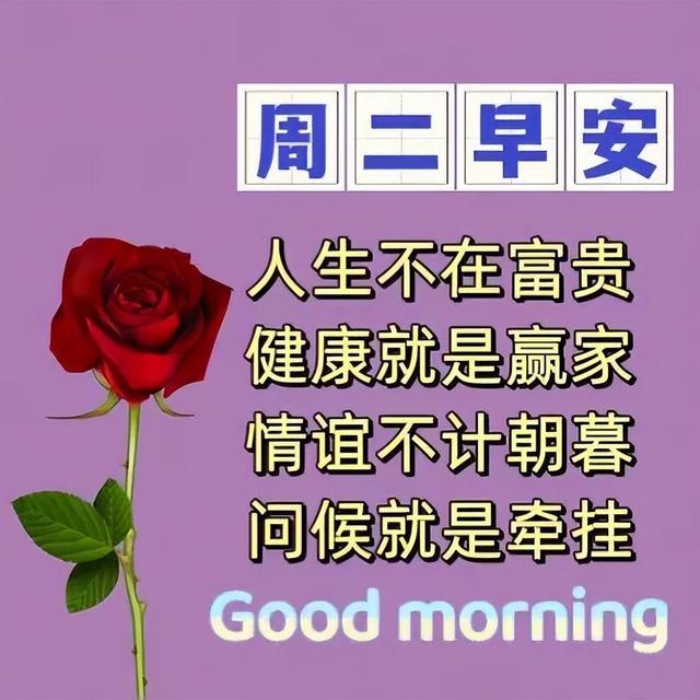 轻轻地一声问候,融入了所有的心愿。淡淡的一句祝福,倾注了无限的真诚!送一份祝福。望各位平平安安,送一份快乐,祝各位健康每一天,送一份真情,和各位一路相伴,愿各位好友平安健康,爱永在心中。周二愉快!!!