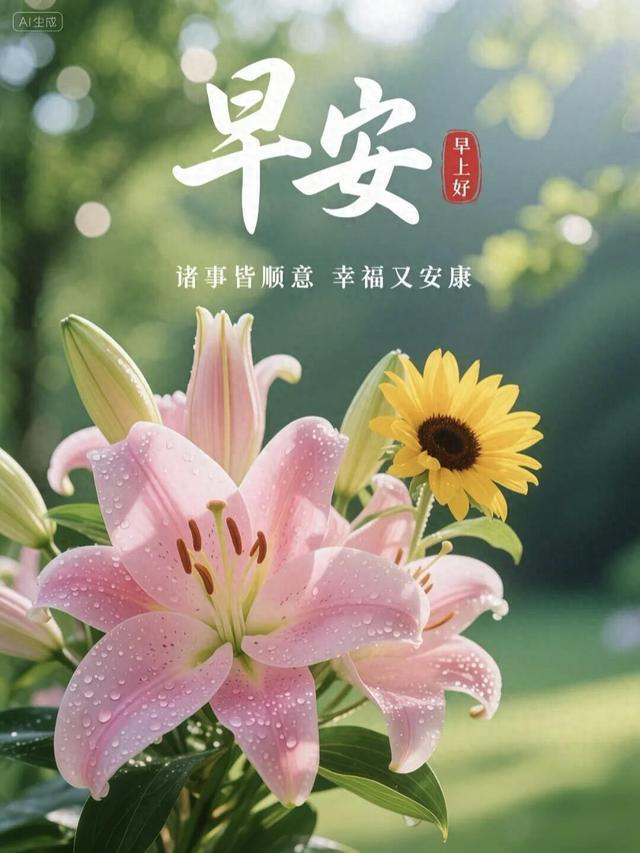 4. 清晨鸟鸣唤朝阳,朋友问候暖心房,愿你怀揣壮志奋力闯,事业绽放耀眼光,家庭和睦笑声扬,日子美好胜春光,早上好!