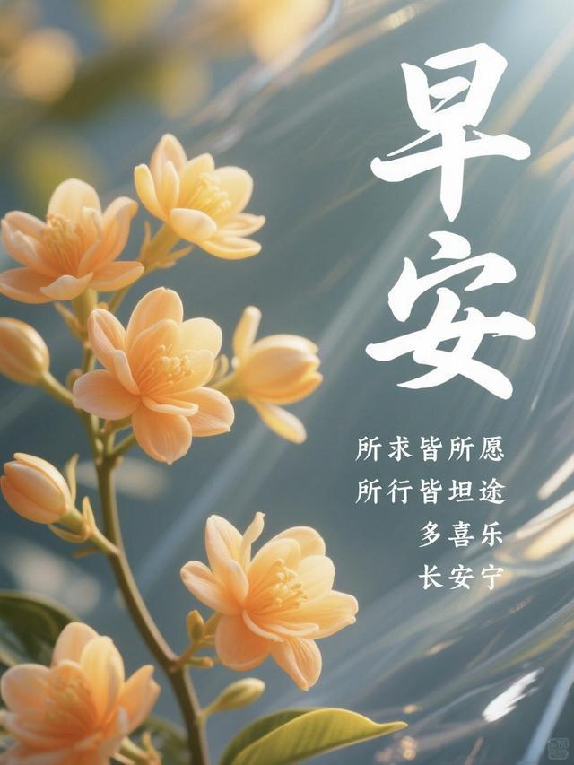 1. 早安吉祥!亲爱的朋友,拂去昨夜的倦意,带着灿烂笑容奔赴新晨,早餐要吃得舒心,精神要养得饱满,愿你今日事事顺意,财运亨通!