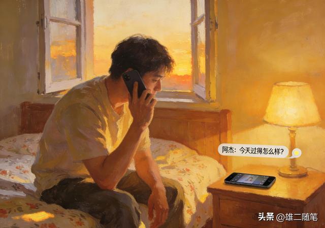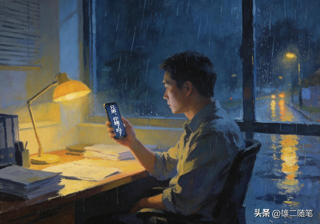 直到那天深夜,城市的雨点敲得窗户咚咚响。我刚忙完一个加班,百无聊赖地刷着手机,突然屏幕跳出个熟悉的名字。阿杰发来一句:“兄弟,你睡了吗?”