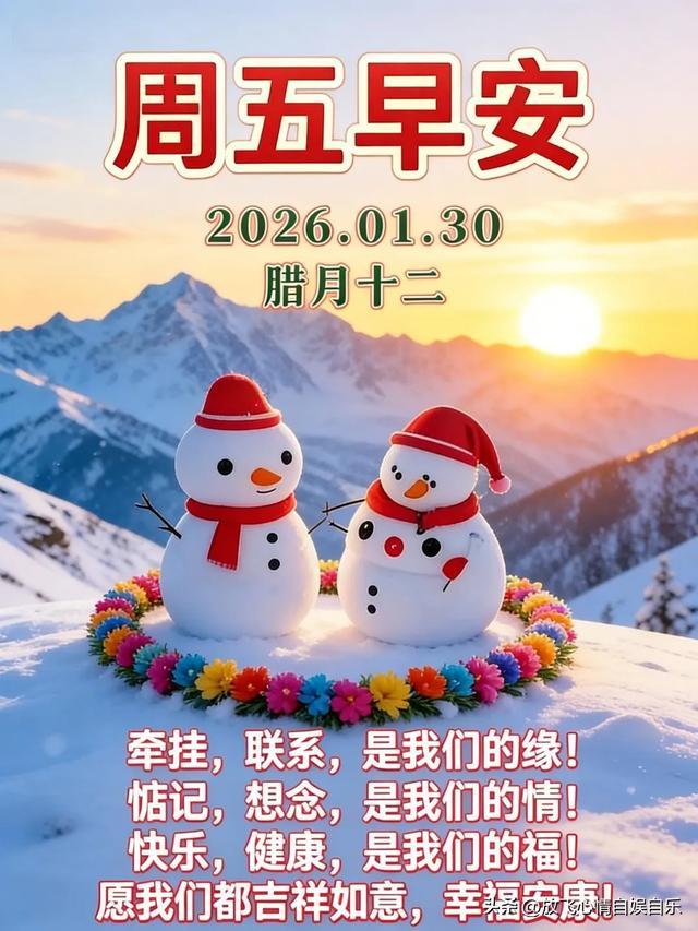 新的一天,新的希望,新的开始。朋友们,今天是2026年1月30日,星期五,伴随着晨曦的第一缕阳光,让我们用一句温暖的早安祝福,开启这一天的美好时光。