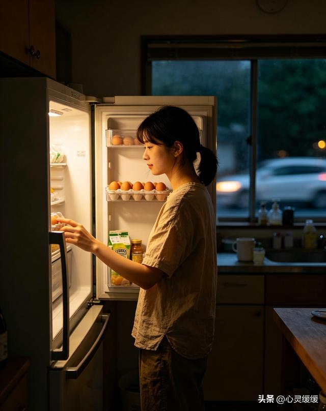 我蹲下身,把袋子拆开,准备把鸡蛋一颗颗码进冰箱。