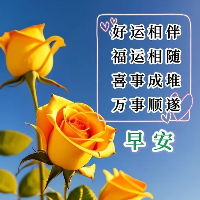 早上好!愿你的人生之旅,步步生花,好运连连,幸福多多,笑口常开。每一个瞬间都充满阳光,每一份努力都不会被辜负,每一段行程皆有好风光。让我们在这个多彩的世界里,温柔地生活,浪漫地爱,热烈地追寻。