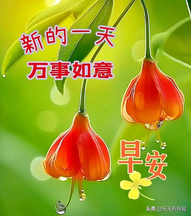 14、愿你的每一天都像蜜糖一样甜,每一刻都像阳光一样明媚,每一步都像风筝一样自由,每一时都像花朵一样绚丽。祝你在新的一天里充满动力和勇气,迎接美好的未来!