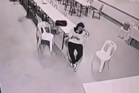 吓死宝宝了,好好地坐着,桌椅飞起来砸人了!