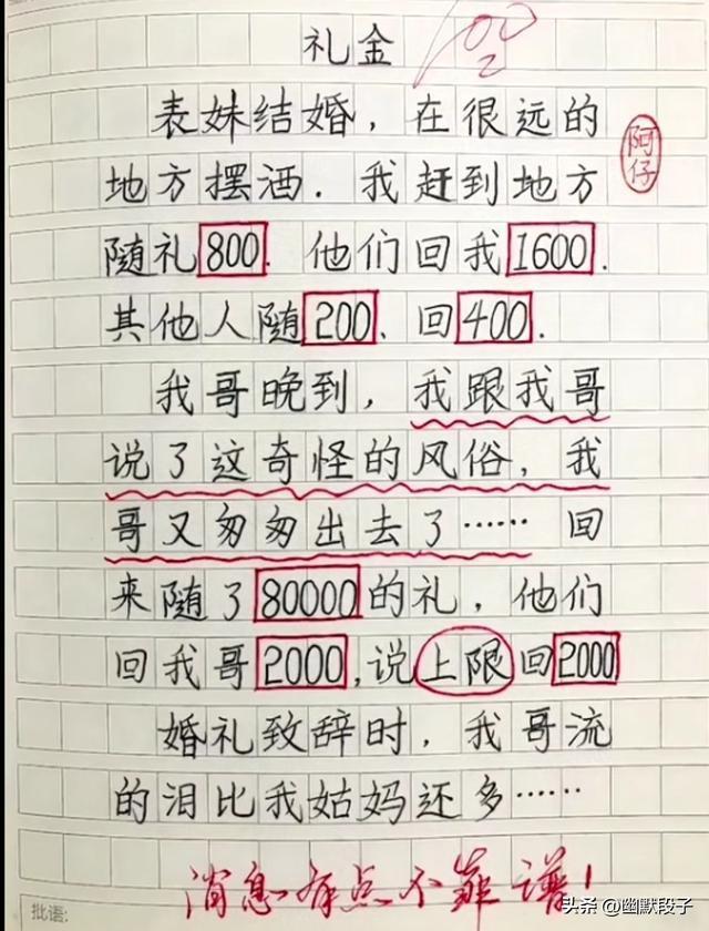 表妹结婚随礼遇奇葩风俗,随多少回双倍,我随800回1600,我哥直接豪随8万,结果被告知回礼上限2000,婚礼上我哥的眼泪比姑妈还多,贪小便宜终究吃了亏。旅游大巴上还有装阔的名场面,男子接电话满口百万生意,转头被美女追问职业,答曰“拉砖的”,这年头吹牛果然不能太上头。