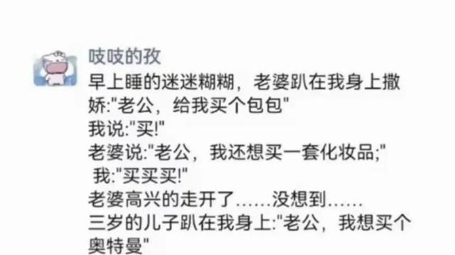 哈哈!儿子学到妈妈的精髓了,但是这招对爸爸不好使啊!