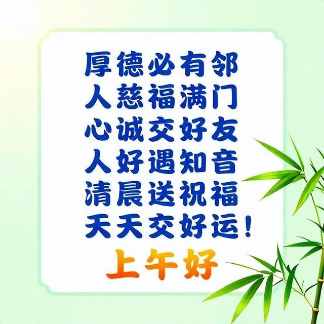 记住别人的好处,叫感恩;忘记别人的不好,叫宽容。懂得感恩和宽容的人,才会活得快乐;新的一天,让所有的遇见都成为美好。每天清晨,要用微笑迎接崭新的的一天。愿朋友们新的一天好心情。亲爱的家人们早上好!
