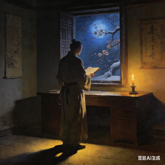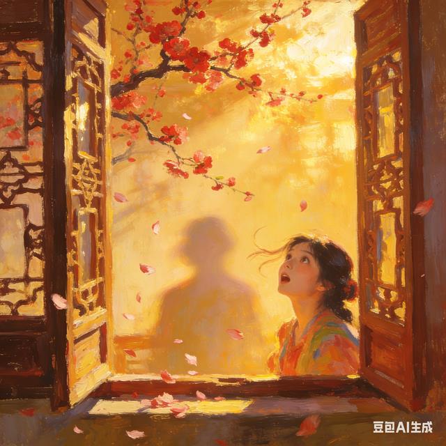 (因思念辗转一夜,窗外梅花竟悄然绽放。晨光中花影映上窗棂,恍然间,还以为是你来了。)