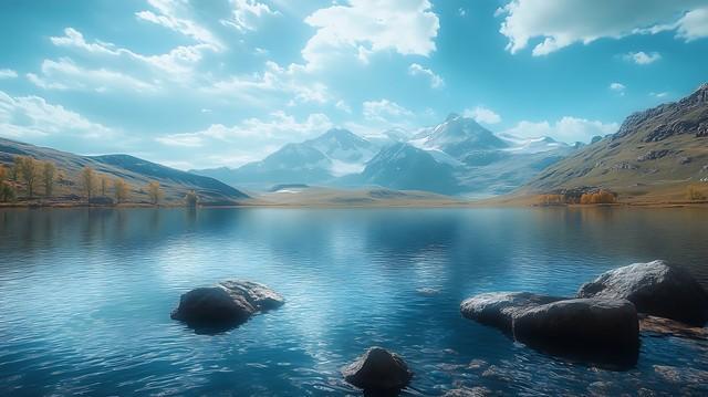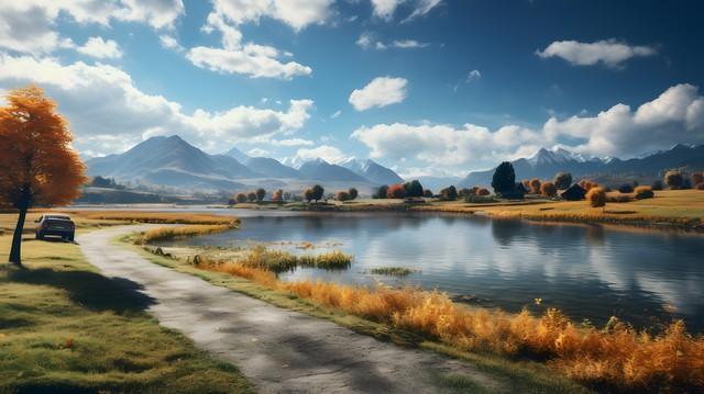2. 月亮照回湖心,野鹤奔向闲云。