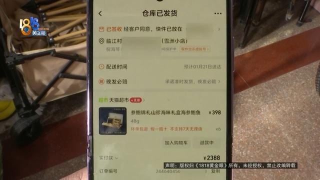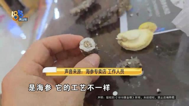 倪女士:之前是没有买过,但是熟人跟我说是不对劲的,然后我就泡发了一下。昨天晚上泡了一晚上,还是跟这个一样大。按道理说的话,应该泡发的话,比原先大一倍,他说里面内脏白白的扯出来跟泡沫一样的。