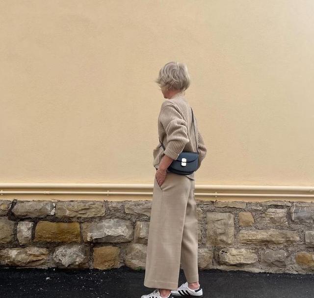 版型和比例的微调,能瞬间年轻好几岁。宽松的阔腿裤、廓形长裙、硬挺的西装外套这些“块头单品”,只要处理好上半身与下半身的比例,就不会显得臃肿。记得我邻居王奶奶,一件白衬衫随意把前摆塞进高腰阔腿裤,袖口自然向上卷起,走路轻盈又有精神;同样的一套如果把衬衫完全放下,整个人就会显得邋遢和向下压。我自己也试过,把西装外套敞开穿,内里留一点领口、露出脚背的鞋子来拉长身形,这些细节真的很管用。