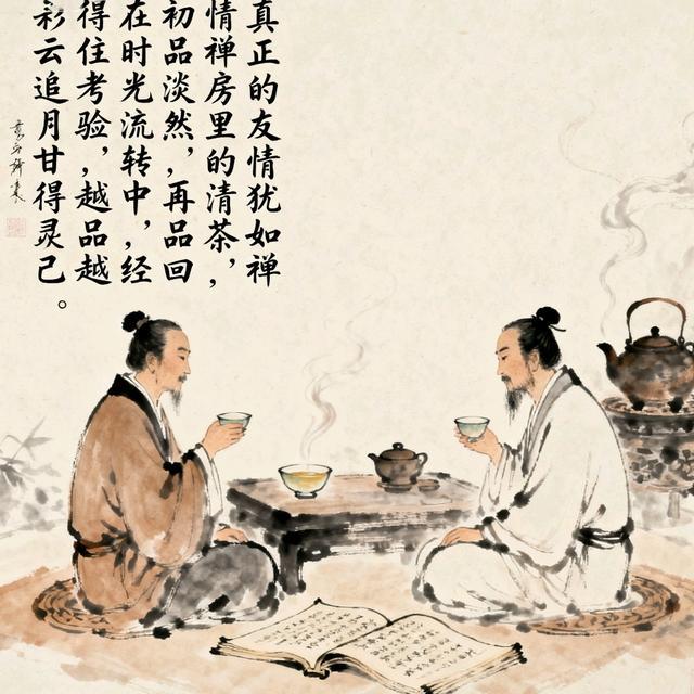 8. 真正的友情犹如禅房里的清茶,初品淡然,再品回甘。在时光流转中,经得住考验,越品越有韵味,滋养着彼此的灵魂。“高山流水觅知音,彩云追月得知己。”