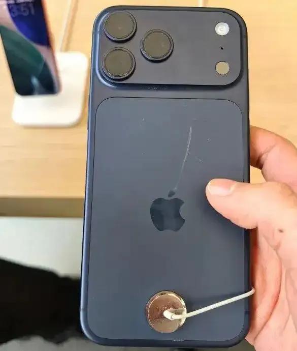 先唠最让人揪心的 “划痕争议”,开售当天就有网友晒出 Apple Store 展示机的 “伤痕”,再加上今年 iPhone17 把钛金属换成铝合金,大家直接炸了锅:“成本降了,机身也变脆了?” 毕竟铝合金硬度确实不如钛金属,之前用 iPhone15 Pro 的朋友还吐槽 “摔一下就凹了”,这次看到划痕,更是担心 “新机用一周就成战损版”。结果苹果一查,发现大部分 “划痕” 都出在第二代超磁晶面板上,而且根本不是刮伤 —— 是店铺里老化的 MagSafe 支架,频繁取放时把支架材质蹭到了面板上,就像白色汽车蹭到黑色车漆似的,看着像划痕,其实是 “染色污渍”。