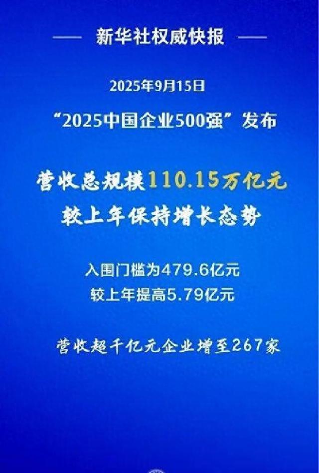 不得不说,这组数字有点刺激人。入围门槛抬高到479.6亿元,500强合计营业收入110.15万亿元,千亿级企业达到267家,占比过半。读到这些,很多人第一反应是既羡慕又紧张:大公司在变得更大,职业和创业的边界在重新洗牌。