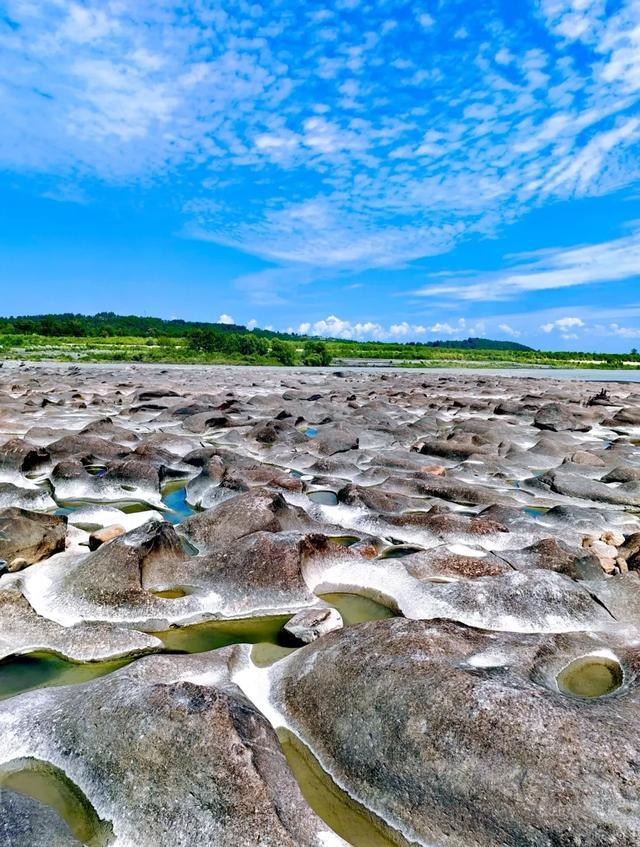 从白浪滩往怪石滩走,路上颠得我腰都快散了,导航显示就十几公里,结果全是坑坑洼洼的小路,开了快半小时才到。攻略里说怪石滩是“婚纱摄影圣地”,日落时分石头被染成金色,拍出来像大片,可我到那儿的时候,正好赶上退潮,岸边全是青苔,踩上去差点滑倒,别说拍婚纱照了,站都站不稳。