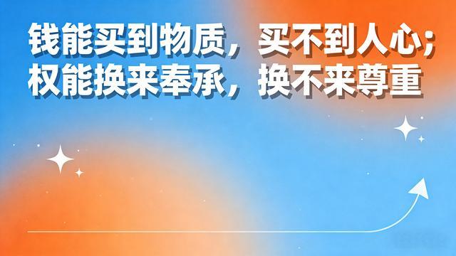 2. 钱能买到物质,买不到人心;权能换来奉承,换不来尊重。