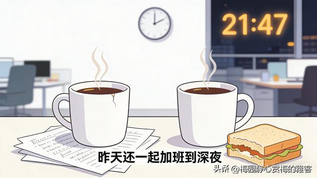 周一早上,小李端着两杯咖啡走过来,放一杯在我桌上。“昨晚又熬到三点吧?黑眼圈都快掉地上了。”他压低声音,“新来那位,纯粹外行指挥内行。”我苦笑点头。这半年来,我俩像拴在一根绳上的蚂蚱,一起加班改PPT,一起挨批,下楼发现共享电车全没电了,只能并排走三公里回家。我以为这是战友情。