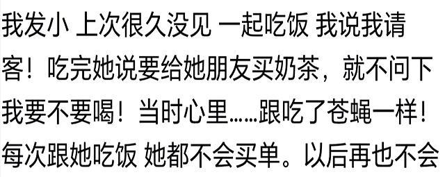 最离谱的还不是不帮,明明上次帮着大包小包带过饭,这次她顺路买东西,愣是没一句问你要不要。