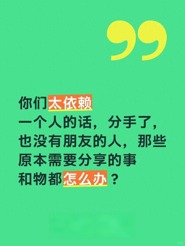 “你们太依赖一个人,分手了,也没朋友的人,那些原本需要分享的事和物都怎么办?”