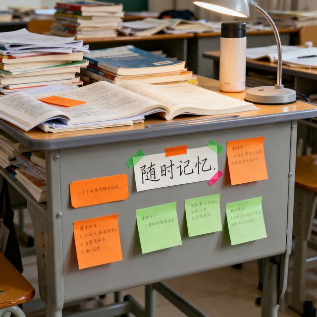 第二个技巧:准备“便携学习工具”。他会把高频单词、古诗文、作文素材写在便签纸上,贴在课本、文具盒、书桌前,甚至手机壁纸都设置成知识点;还会用录音笔把自己背诵的内容录下来,方便随时听。不管走到哪里,都能利用碎片时间学习。