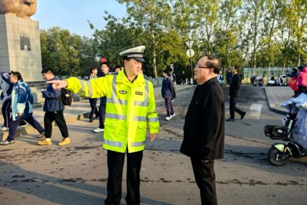 有同学路过时,对着交警同志深深鞠躬,大声说着 “谢谢交警叔叔”,交警同志则笑着挥手回应,那抹荧光绿在初冬的晨光里,成为了最温暖、最可靠的风景。正是他们的默默坚守与全程护航,让这场 20 公里的远足之路走得格外顺畅、安心。