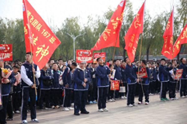 战鼓催征,气势如虹。活动伊始,高三学子列队而立,振聋发聩的鼓点响彻校园,敲碎迷茫、燃旺斗志、敲定必胜信念。以鼓为号,以誓为铭,学子们身着统一服装,组成“腾飞团队”各班级方阵,神情坚毅、步伐整齐。“今日出征,不负韶华;六月凯旋,势不可挡”的誓言铿锵有力,回荡在校园上空,展现出新华学子决战高考的昂扬姿态。
