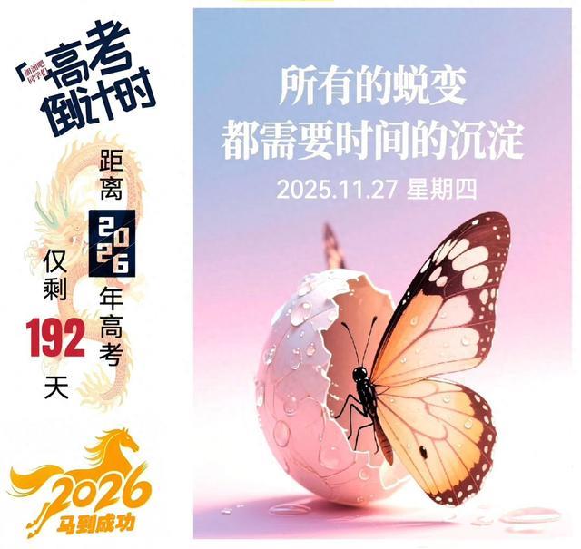 时光如梭,战鼓催征,192天的征程已在脚下铺展。这是一段为梦想冲刺的旅程,更是青春蜕变为“成人”的庄严典礼。此刻,我们以坚定的成人之姿,共赴这场名为“高考”的约定——愿笔锋所至,皆是心之所向的坦途;愿奋斗所及,皆能绽放如愿的荣光!