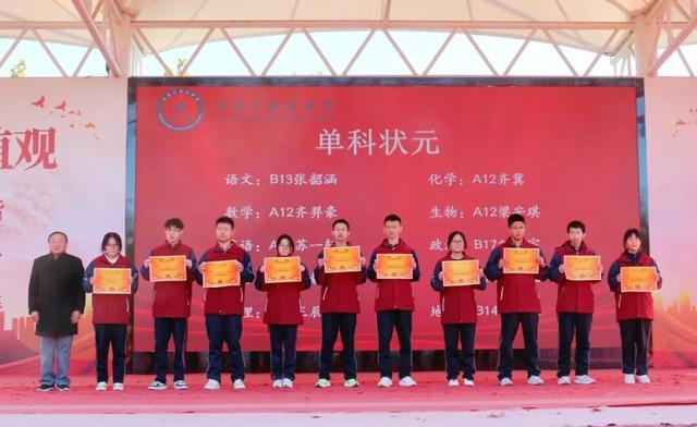 首先,学校对在近期联考中取得优异成绩的物理组合前二十、历史组合前十及单科状元进行了隆重表彰。
