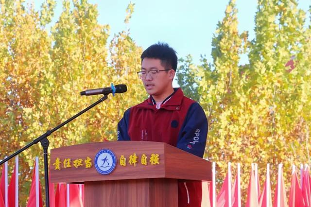 学生代表高三A17班靳晨硕同学发言,他呼吁同学们要立志高远、脚踏实地,在最后的二百天全身心投入到学习之中,用汗水浇灌理想,扬起希望的风帆,乘风破浪!他的发言道出了全体同学的心声,展现了金石学子无畏艰难的勇气与志在必得的信心。