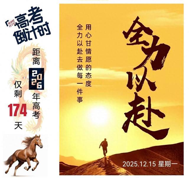 光阴从不辜负真正的耕耘者。这174天,是化知识为利刃的磨砺期,是积小流成江海的关键程。请相信,那些反复演算的公式、背诵百遍的篇章、错题本上密密麻麻的批注,都正在沉淀为你未来考场上的从容与底气。时光是沉默的裁判,但它终将把最响亮的掌声,献给从未停止奔跑的你。
