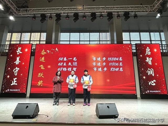 大会对本次考试中表现卓越的学子予以表彰,“卓越领航奖”“奋进飞跃奖”“学科巅峰奖”及“班级领军之星”奖项依次揭晓。学校领导为获奖学子颁奖。优秀从非偶然,它源于在无人问津时依然清晰的成长足迹。那些与晨曦相伴的诵读,同星辉共守的演算,此刻都已沉淀为纸面上理性的光芒与令人欣喜的刻度。