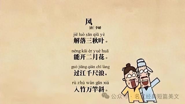 “解落三秋叶,能开二月花。过江千尺浪,入竹万竿斜。”这是唐代诗人李峤笔下的《风》,短短二十字,却将风的形象刻画得淋漓尽致。没有一个“风”字,却处处都有风的踪迹,这便是这首诗的奇妙之处。