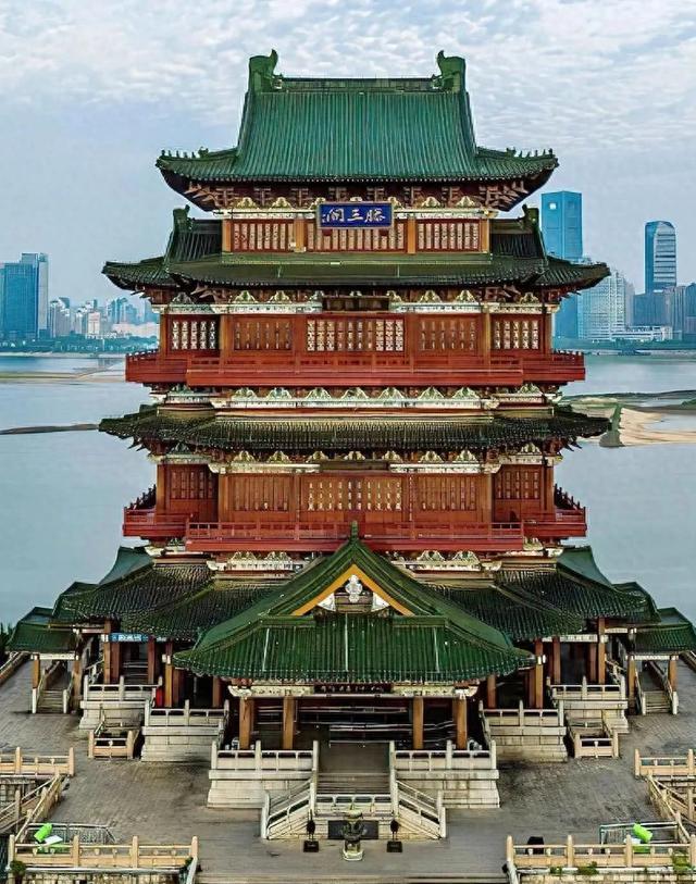 时维九月,序属三秋。潦水尽而寒潭清,烟光凝而暮山紫。俨骖騑于上路,访风景于崇阿。临帝子之长洲,得天人之旧馆。层峦耸翠,上出重霄;飞阁流丹,下临无地。鹤汀凫渚,穷岛屿之萦回;桂殿兰宫,即冈峦之体势。