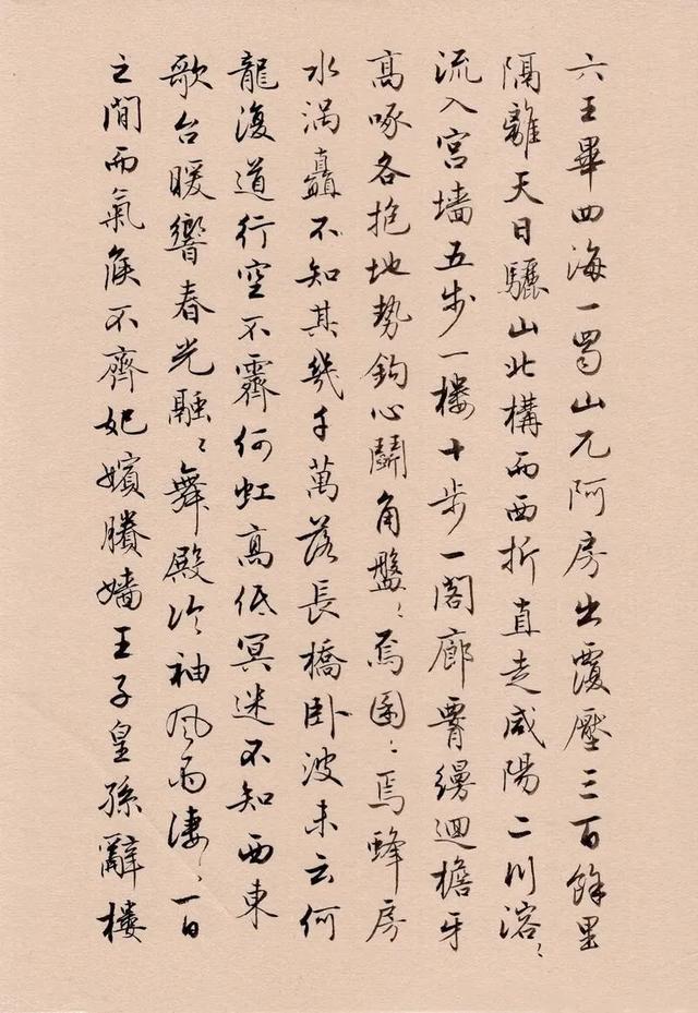 妃嫔(pín)媵(yìng)嫱(qiáng),王子皇孙,辞楼下殿,辇(niǎn)来于秦。朝歌夜弦(xián),为秦宫人。明星荧(yíng)荧(yíng),开妆镜也;绿云扰扰,梳晓鬟(huán)也;渭流涨腻,弃脂水也;烟斜雾横,焚椒兰也。雷霆乍惊,宫车过也;辘辘(lù)远听,杳(yǎo)不知其所之也。一肌一容,尽态极妍,缦立远视,而望幸焉。有不见者三十六年。燕赵之收藏,韩魏之经营,齐楚之精英,几世几年,剽(piāo)掠其人,倚叠如山。一旦不能有,输来其间。鼎铛(chēng)玉石,金块珠砾,弃掷逦(lǐ)迤(yǐ),秦人视之,亦不甚惜。