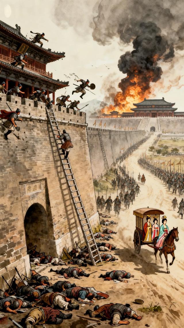 同年,潼关失守,长安危在旦夕。唐玄宗仓皇出逃,行至马嵬驿时,禁军哗变,杨国忠被杀,杨贵妃被迫自尽。长安随后陷落,昔日繁华帝都惨遭劫掠。