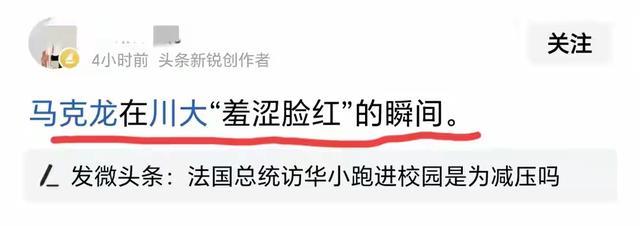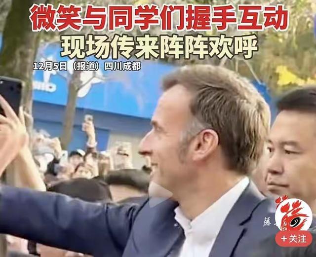 正如央视新闻报道的那样,12月5日上午的四川大学之行,成为此次行程的一大亮点。当马克龙总统的车队抵达校门口时,校园内早已聚集了不少手持中法两国国旗的学生,大家有序列队,齐声高喊欢迎口号。或许是被学生们的热情感染,马克龙总统加快脚步向人群走去,陪同人员随后跟上,学生们也顺势向前靠近,隔着校门完成了一场温暖的“双向奔赴”。